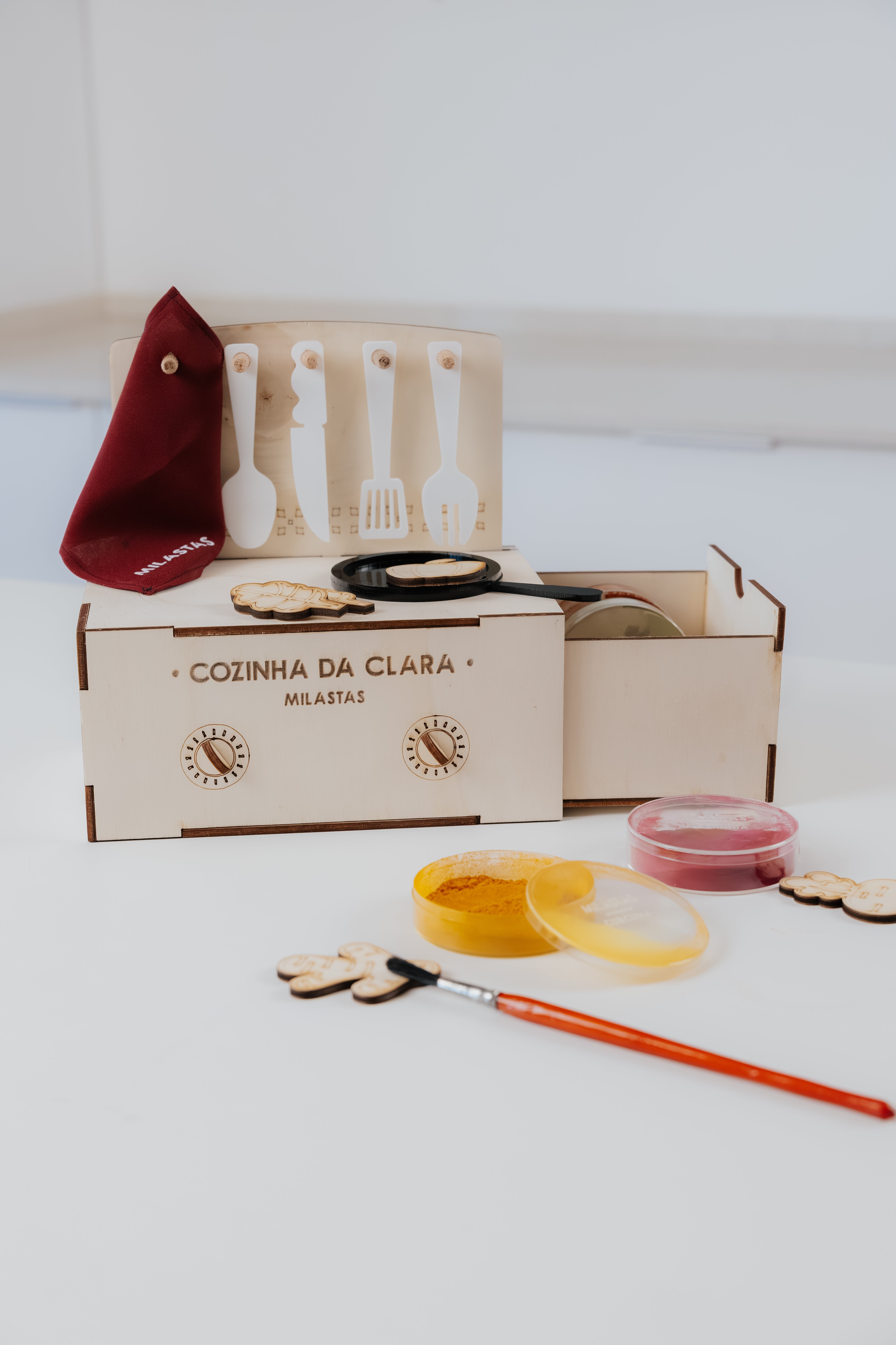 Caixa Kids Experience Uma caixa de madeira que se transforma em cozinha, com 4 especiarias e desidratados e muitos acessórios. Para além de poderem brincar aos cozinheiros, podem ainda adicionar àgua ás especiarias e pintar a caixa de madeira. Esta atividade é sensorial, desenvolvendo a capacidade de destinguir os aromas de cada produto, as suas cores e promovendo o interesse pela cozinha. Especiarias Incluídas: Pimentão Doce Espinafre Curcuma Beterraba (em caso de rutura de stock, substituiremos a especiaria em falta por outra semelhante) Tamanho da caixa: Para personalização 1. Efectue a compra do pack. 2. Entre em contacto connosco para sabermos qual a frase/nome que quer gravar na caixa. 914594269 | 219255500 | info@milastas.pt Limitado ao stock existente | Previsão de entrega 7-10 dias, após pagamento.