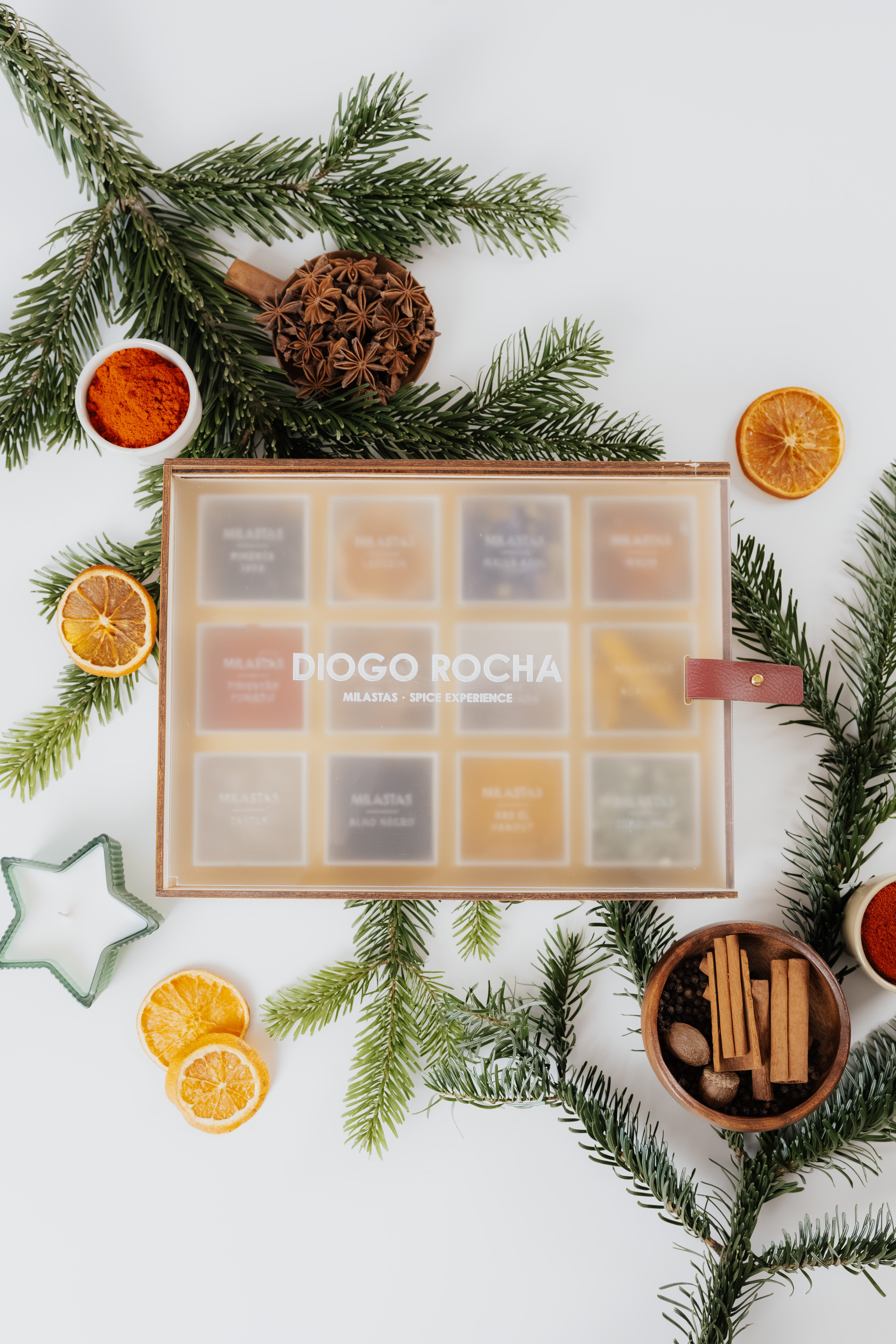 Caixa Chef Experience A nossa caixa mais especial, feita para os amantes dos nossos sabores. Doze especiarias selecionadas, numa caixa de madeira única. Especiarias Incluídas Pimenta Rosa Alho Negro Caril Goa Cebolinho Laranja Malva Azul Macis Noz Moscada Pimenta Java Pimentão Fumado Ras el Hanout Zaatar (em caso de rutura de stock, substituiremos a especiaria em falta por outra) Tamanho da caixa: 22x28cm Para personalização 1. Efectue a compra do pack. 2. Entre em contacto connosco para sabermos qual a frase/nome que quer gravar na caixa. 914594269 | 219255500 | info@milastas.pt Limitado ao stock existente | Previsão de entrega 7-10 dias, após pagamento.