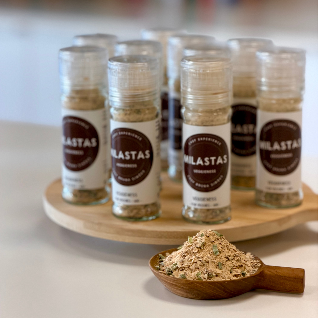 Dado a sua paixão pelos vegetais, decidiu criar o Veggieness: uma mistura de temperos selecionados especialmente para receitas à base de vegetais.